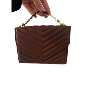 TITLE: Brown Quilted Chevron Mini Shoulder Bag – Gold Chain Strap
