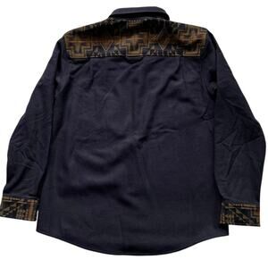 Pendleton lined snap-front 100% virgin wool shirt jacket with Southwest/Aztec trim details.