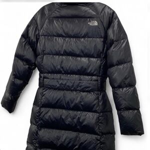 The North Face Caroline Goose Down Coat XS Glossy Black Belted Puffer