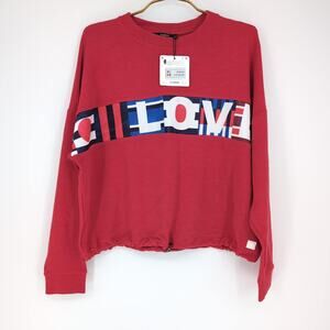 Desigual Eco Adjustable Red Ribbed Love Olympia Sweatshirt Top - US Size S - NEW