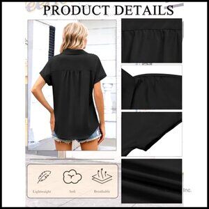 Short Sleeve Button Down Shirt V Neck Blouse with Pocket Loose Fit