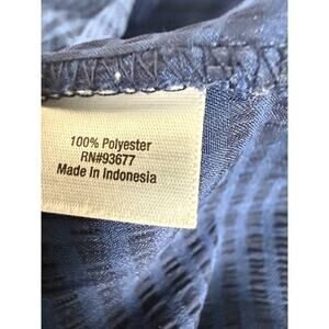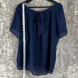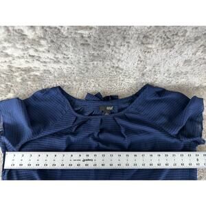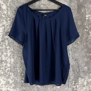 ANA A New Approach Size L Casual Semi Sheer Pleated Top Navy Short Sleeve