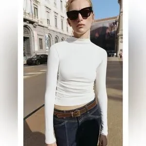 BRAND NEW WITH TAGS. White mock neck top made of 95% cotton and 5% elastane.