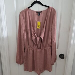 Chic long sleeve romper. Features a tie front detail. Perfect for casual outings.