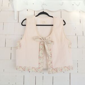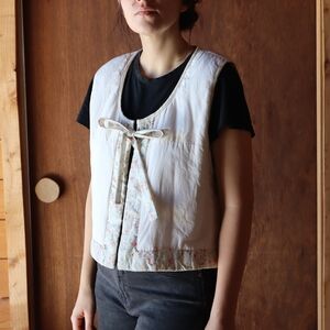 Upcycled Patchwork Quilt Floral Trim White Vest M • L • XL
