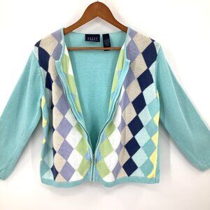 Crazy Horse Women's Large L Multicolor Pastel Argyle Full Zip Sweater Cardigan