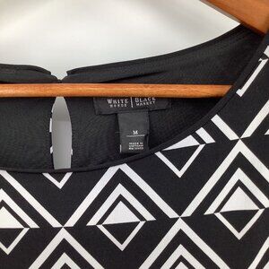 WHITE HOUSE BLACK MARKET Women's Black & White M Geometric 3/4 Sleeve Dress