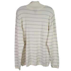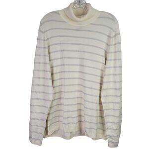 Chicos Striped Sweater Women's 3 Size XL Cream Silver Long Sleeve Turtleneck