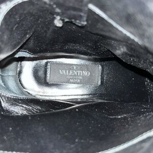 Amazing Valentino leather combat boots. Black leather with silver studs - the quintessential Valentino trademark. Add cool factor to any outfit - buckle detail adds edge. These have been cleaned and polished since the photos and still have lots of life in them! :) Will fit a 6 1/2.
