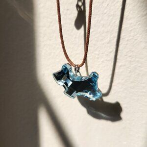 Aquamarine crystal dog mini pendant on brown cotton cord,