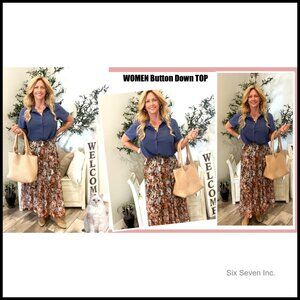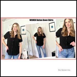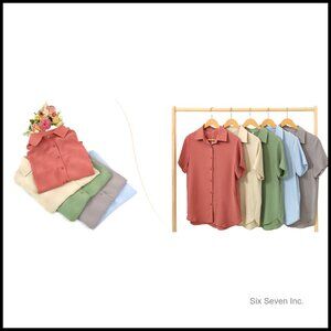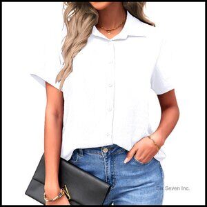 A versatile, loose-fit top designed for comfortable wear in business casual settings or during summer. Features a classic collar and button-up design for a chic, elegant look that pairs easily with various wardrobe staples.