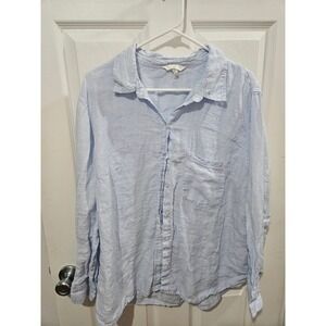 HM Linen Shirt Womens XL Light Blue Long Sleeve Button Down Pocket Top