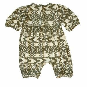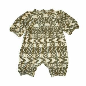 Adorable Kate Quinn Aztec-themed romper. Neutral colorway. In excellent condition. Smoke free and pet friendly (non-shedding) home. #katequinn #aztec #organic