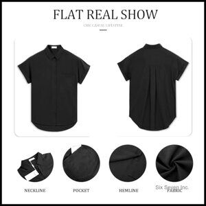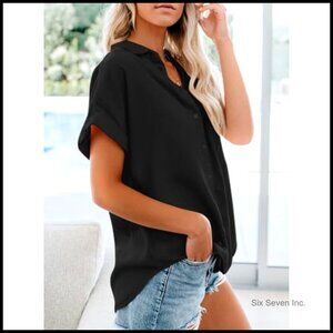 Cotton Short Sleeve Button Down Shirt with Pocket Casual Blouse