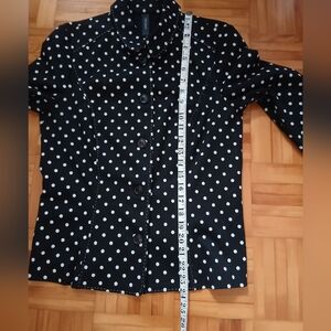 Elegant black blazer with white polka dots. Classic design with a modern twist.Knit material. Ideal for both casual and formal occasions. Beautiful stitching on seams. For sizing check photos!