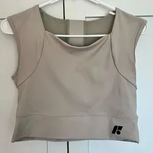 Experience comfort and style with this beige sports bra. Perfect for workouts or casual wear.