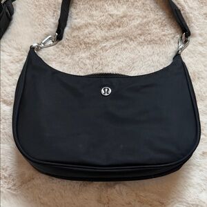 Elegant black shoulder bag with a sleek design. Features a comfortable strap and secure zipper closure.