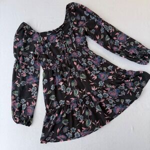 Live To Be Spoiled Floral Mini Dress Black Pink Smocked Waist Medium