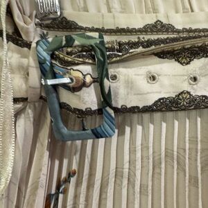 Elegant cream midi skirt with green botanical print. Features pleats and a stylish belt. Worn a few times over the course of 1.5 years, but still in excellent condition. Comes from a smoke-free home. Comfortably fits a US size 6-8.