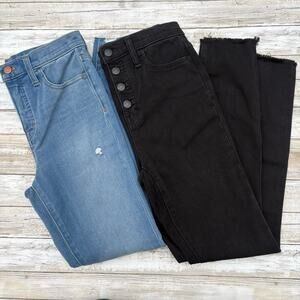 Lot of 2 Madewell High Rise Skinny Distressed Jeans Jeggings 26T Black Blue