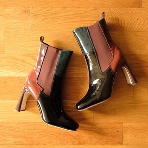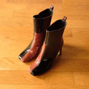 Circus by Sam Edelman Elle Colorblock Patent Ankle Boots Womens Brown Black 7.5