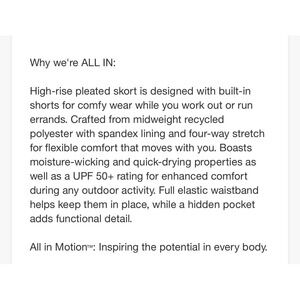 This All In Motion Women's Black Athletic Skort is the perfect blend of performance and style, designed to take you from the tennis court to the gym without missing a beat. Crafted with high-quality quick-dry fabric, it ensures you stay cool and comfortable during high-intensity gym & training sessions or a long day on the golf course.