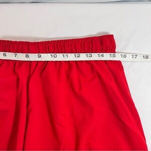 Vibrant red athletic shorts with a Nike logo. Comfortable and stylish for workouts. Please see pictures for additional info!! Comes from a smoke free home! These have never been worn! Hubby just didn’t into red clothes!