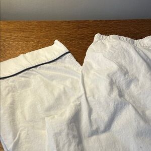 Elegant ivory sleepwear set by J. Crew. Features a button-up shirt with navy piping and matching pants. Worn once.