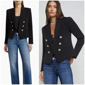 NWT L'AGENCE Brooke Double-Breasted Blazer in Black Rhinestone SZ US 12