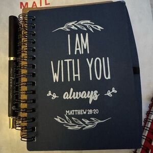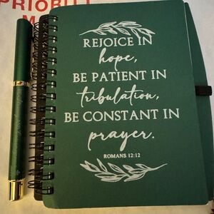 The journals and pens feature uplifting Bible verses and Christian themes.