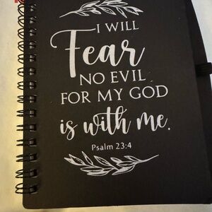 Set of spiral notebooks with Christian motivational quotes. Includes red, green, blue, and black notebooks.