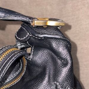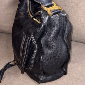 Chloe Black Leather Hobo Bag with Gold Accents