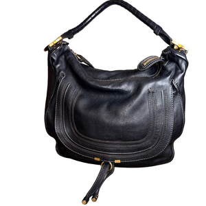 Chic black leather hobo bag by Chloe. Features stylish gold accents. Perfect for everyday use. A Preowned beautiful Fendi Chloe Marcie Hobo bag with mild signs of wear.