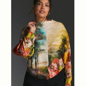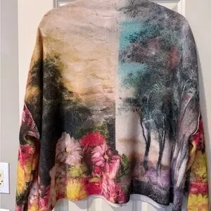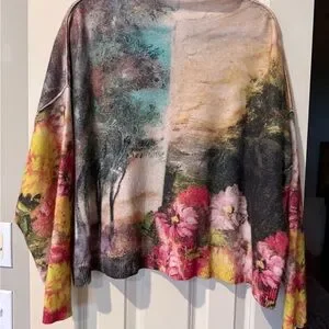Soft cashmere sweater by Pilcro. Elegant vibrant art work multi color.