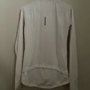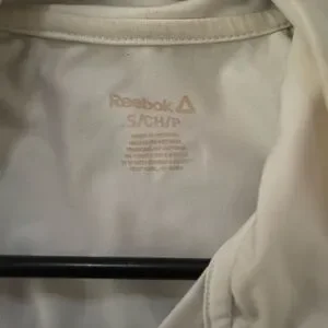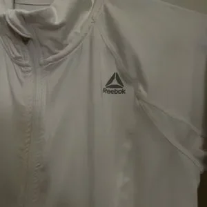 Sleek Reebok jacket with full-zip design. No problems. I loved this jacket, it has a very flattering fit, but only was able to wear it a couple of times.