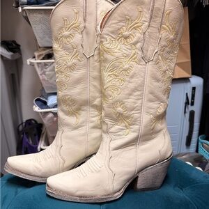 Elevate your look with these chic cream cowgirl boots, featuring elegant embroidery. Perfect for any stylish occasion. Worn once to a Luke Combs concert.