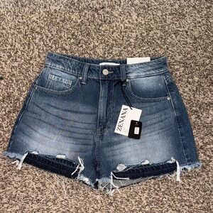 Zenana Outfitters Distressed Dark Blue Jean Shorts