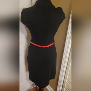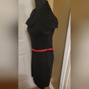 Banana Republic Elegant Cowl Neck Black Sheath Dress with Red Belt, Size XS. No label tags.