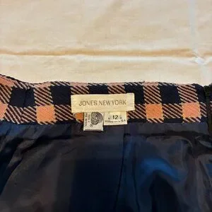 💙 Jones New York Pure Wool Skirt – Size 12 – Blush & Blue, Fully Lined