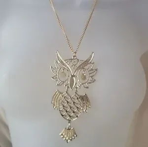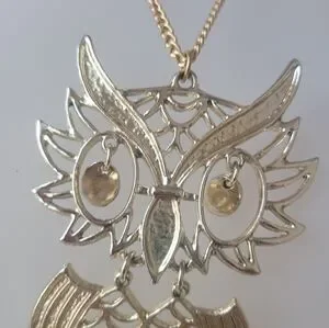 Vintage 80s XL gold-tone owl necklace, good vintage condition, non-smoking, sanitized, very cool vintage owl necklace.