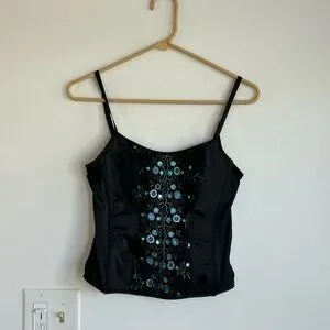 Vintage Victoria’s Secret Black Floral Embroidered Corset Whimsigoth Fairy 90s