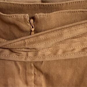 A women's linen blended skirt from Calvin Klein. The skirt is in a straight style with ruffle trumpet hem. The skirt has front pockets, belt, back zipper closure, and the skirt is new with tags.