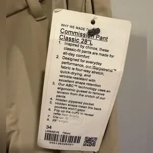 NWT Lululemon Athletica Men's Commission Pant Classic 28’ LL Size 34