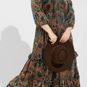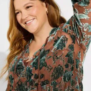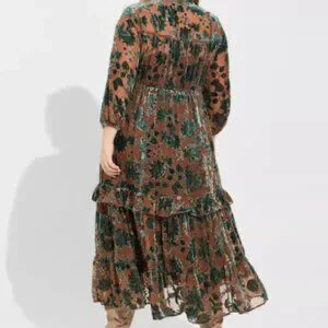 Torrid Velvet Burnout Ruffle Dress, Green/Tan, Size 3 (3X, 22/24)
