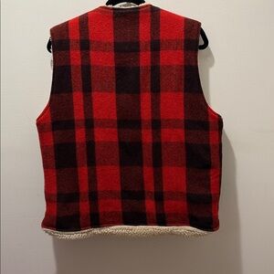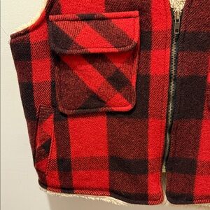 Vintage Roots Red and Black Outdoors Boa Wool Check Vest. Medium