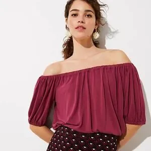 LOFT Blush Red Short Off Shoulder Sleeve Top