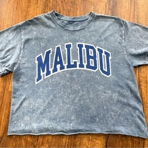 Social Culture Malibu Blue Acid Wash Cropped Graphic Tee