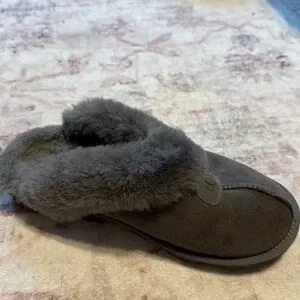 Soft and warm UGG slippers. Charcoal color with plush lining.
