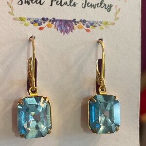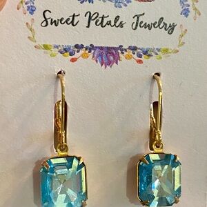Vintage Swarovski crystals in aquamarine shade with vintage setting leverback earrings are new. Add a splash of color with these exquisite aqua and gold drop earrings from . Perfect for any occasion. 10x12 crystals. Save on bundles 🎁