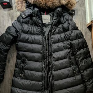 Moncler Women's Black Puffer Jacket with Fur Hood Size 2